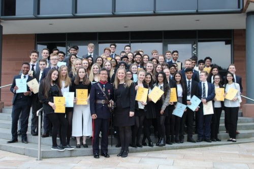 The High Sheriff and Joanne attended the Easter Camp Visitors’ Day of the Greater Manchester Army Cadet Force at the Colonel Mary Creagh County Headquarters and Cadet Training Centre at Hawkshaw, Bury where they were greeted by Colonel Paul A Irvine and had a wonderful afternoon awarding prizes, watching first aid courses, visiting the firing range and getting to know the very fit and dedicated cadets; along with the Lord Lieutenant, the Mayor & Mayoress of Bolton, the forthcoming Mayor of Bury and some former High Sheriffs.